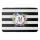 Modern badmatt med blommigt vattenfärgsutandning på svart och vit strimlad bakgrund. Anpassa monogrammet genom att välja bland många underbara typsnitt.