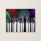 Contemporaryn Black Silhouette Forest med Färg är en magisk design som på ett modernt sätt fångar naturens skönhet. De svarta silhuetterna i träd ställs in mot en bakgrund av vibrerande färg som skapar en slående kontrast. Utformningen är både elegant och abstrakt. Mot en vit bakgrund är de graciösa silhuetterna av träd höga, och deras grenar når ett kalejdoskop med vibrerande nyanser. Stänk av rött, grönt och lila fyller löven på träd.