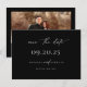 Contemporary Chic Minimalist, bröllop-fotot sparar datumkortet. Vit typografi med svart färg. Ett foto med ett vågrät på baksidan.