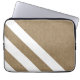 Modern laptop sleeve med faux burlap struktur och vit rand.