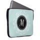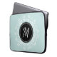 Trendig laptop sleeve med myntblått blommigt andedräkt och personlig monogram.