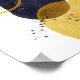 En contemporary, modern abstrakt konstillustration som har två större former i guld och mörk marin blå, med en guld-cirkel och stänk av marin färg och guld. En enkel men elegant teckning.