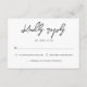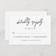 Den här OSA kort skryter med en elegant och modern design med ett djärvt skript med contemporary. Den raka layouten med kryssrutor och en angiven rad för gästantalet garanterar kristallklara svar från dina inbjudna. Svarskortet är perfekt för par som prioriterar en ren estetisk processaa och en effektiv OSA.