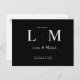 Svart bakgrund. Monogram simpel Bröllop spara datum. Contemporary. Vykort.
