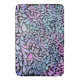 Contemporary av petaler i pinkar, blues, teals och lila flyter över en fet svart bakgrund. Originalfärgning av digitala färger.
