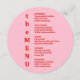Se till att du med den här Contemporaryn Whimsical Red & Rosa Bröllop Menu (listrutan vid bord) kan se ut som om du har gjort det. Designad i en unik rund form har den en mjuk rosa framsida med fetstilt röd text och ett sjudande rött bakåt med delikat rosa och en charmerande illustration. En perfekt som blandar nykter och lekfull elegans. Ett enkelt anpassade att matcha din speciella dag!