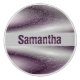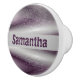 Anpassa förskolan med den här lådan eller skåpet. Den här keramiska knoppen har ett djärvt och modernt mönster i lila och vitt. Den glansigt diagonala linjerna visas bakom en solid light lila-banderoll som ger bakgrunden till baby namn. Anpassa snabbt och enkelt.