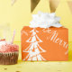 En modern, men ändå elegant julomslutning med en orange och ett vitt tema med vit Julgranar och "Bli god" julhälsningar, spridd över orangens bakgrund till ge din gåva som täcker in en contemporary, snyggten ser ut den här julhelgen.