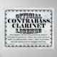 Officiell Contrabass Clarinet License. Det finns många verksamheter som omfattar olika typer av utrustning, t.ex. bildrift, flygplan osv., som kräver specialiserad utbildning och licenser. Skapar musik är något som vanligtvis kräver utbildning: lektioner, praktik och repetitioner. Borde det inte krävas av de blivande musikerna att de får tillstånd att använda utrustningen, dvs. deras musikinstrument?