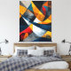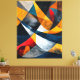 Bold planes of amber, deep blue, charcoal, and crimson intersect in a dynamic balance of motion and restraint. Sweeping arcs and sharp geometries overlap like measured currents, suggesting movement held in suspension. Fine textural marks and subtle scuffs add depth, giving the composition a tactile, architectural presence. This canvas print brings a sense of structured energy to a space—simultaneously modern, contemplative, and visually arresting.