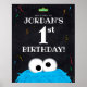 Välkommen dina gäster till ditt barns första födelsedag med detta söta Cookie Monster välkomstskylt.