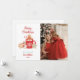 Det här lekande julfotokortet har en ljusröd mugg med en snöflinga och en pepparkaksgubbe som sticker ut från toppen. Du kan anpassa dig med ett foto, namn och år på framsidan och lägga till ditt eget helgdag önskemål på baksidan. Färg omfattar rött, brunt och akvarium.