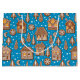 Hand plockade-vektor mönster med olika gingerbrödhus, fir träd, snöflingor och halvmånsformade kakor av måne på blått med fallande snö