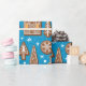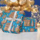 Hand plockade-vektor mönster med olika gingerbrödhus, fir träd, snöflingor och halvmånsformade kakor av måne på blått med fallande snö