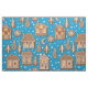 Hand plockade-vektor mönster med olika gingerbrödhus, fir träd, snöflingor och halvmånsformade kakor av måne på blått med fallande snö