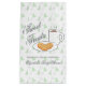 Cookies and cocoa gender neutral baby shower with gray snowflakes and winter green trees bordering a plate of chocolate chip cookies and a mug of hot chocolate