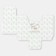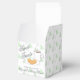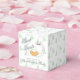 Cookies and cocoa gender neutral baby shower with gray snowflakes and winter green trees bordering a plate of chocolate chip cookies and a mug of hot chocolate