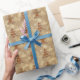 Elegant och utsökt julillustration: Dekorerat gingerbröd Julgran och människa med stjärnor på bruna bakgrunder.