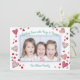 Cookies and candy hearts Photo Valentines day card. Platta kort med böjd grönt överst och grund. Lägg till ett foto av vågrät (liggande) i mitten med ljusblå ram. Cookies och candy i rött och rosa dekorerar kortets kant.