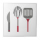 Klassmässiga matlagningsredskap i ett vismiskt mönster. En knivar, visk och äggmjukare.