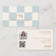Förhöj ditt bageris varumärke med vårt schackrutiga blå och elfenbensfärgade visitkort för bagerier. Ett perfekt visitkort för kaféer, bagerier, konditorier eller mikrobagerier, detta ljusa pastellblå och krämfärgade visitkort är ett måste för att skapa ett varaktigt intryck. Kortet har ett schackrutigt ljust blått och elfenbensfärgat mönster med guldbokstäver. Baksidan visar din kontaktinformation, ditt foto och en anpassad QR-kod. Om du tar med din egen logotyp kan du redigera croissantlogotypen till din egen logotyp på några sekunder och uppdatera all text innan du lägger din beställning. Gör ett statement med varje interaktion och låt ditt visitkort tala om för världen om ditt bageris engagemang för kvalitet och stil. Upp
