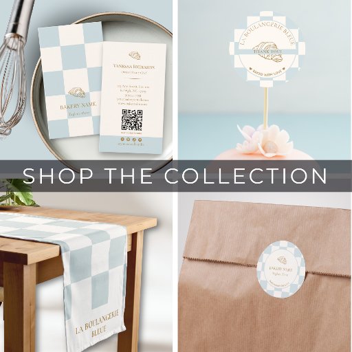 Elevate your bakery's branding with our checkered blue & ivory bakery business card. Perfect for cafes, bakeries. patisseries or micro bakery brand packaging, this light pastel blue bakery business card is a must-have for creating a lasting impression. If bringing your own logo you can edit the croissant logo to your own logo in seconds and update all text before placing your order. Make a statement with every interaction and let your business card speak volumes about your bakery’s dedication to quality and style. Update your business packaging with this custom French blue checkered business card.