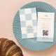 Cool Blue Checkered Cafe Croissant QR Bakery Visitkort
