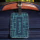 Cool Blue Geometric Grid Pattern Personalised Bagagebricka