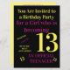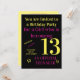 Cool, du är 13 - Officiell tonåring födelsedagsinbjudan. Färgad i gult och rosa. Anpassa den med din egen information.