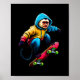 Cool Funky Capuchin Monkey Skateboarding Illustrat Poster