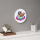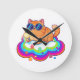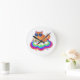 "It's always time to be cool! Add a pop of color and humor to your room with this funny wall clock featuring a chubby ginger cat wearing retro sunglasses and sitting on a rainbow cloud.