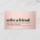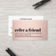 Modern fully customizable referral card template for beauty related professionals. Cool bold design with faux rose gold background and bold black fonts.