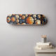 Slå skateparken med denna djärva, futuristiska som har skarpa cirkulära motiv i skuggor av orange, vitt och grått på en marinblå bakgrund skapar en mosaikliknande abstrakt. En liten namnskylt lades till överst för anpassning.