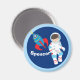 En magnet-gåva från coola rymden till ett barn som kärlek planeter och rymdskepp. Har en astronaut i en rymdesuit med rött och blått flytande i himlar bredvid en raketfrakt. Anpassa med ditt barns namn i vitt på den blå bakgrunden och använda den här så att de hänger på konsten på kylskåpet.