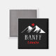 Visar två bergstoppar, Banff och Kanada nedan, och ett kanadensiskt apel löv ovan. Banff är både en stad och en park i Alberta. Coola, vit och röd design, både retroaktiv och modern samtidigt. För människor som kärlek ska skidåka, höka och se omkring Banff, ett attraktivt bergsområde och vildmarksparkeringsområde i Albertas Rocky mountains, västern Calgary i Kanada. Fantastisk souvenir på semestern.