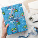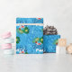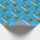 Perfekt Gift Wrap om du åker till Bassäng Party! Utformningen har en blå vatten-simmande bassäng-bakgrund, dekorerad med rött och vitt uppblåsbart ringar, tropiska handflatan löv och veck, en gult exotisk blomma och roligten BASSÄNG PARTY.