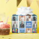 Coolans födelsedag papper med en 6-fotomallkollage av en man och hans namn på de blå fyrkanterna bredvid roligt party-ballonger. Cute personlig Grattis på födelsedagen-presentfigursättning för en pojke eller tonåring.