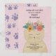 Coola Blommigt Cat-tjejen födelsedagsfest inbjudan har en söt katt med öga stängd, med blommigt "hatt". Cute lila cat tass avtryck på baksidan.