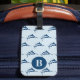 Coola marinblå svärdfisk mönster på ljusblå bagagemärke med monogrammat.