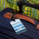 Utformning av resagetaggen med blått vitt rand. Coolans moderna utformning.