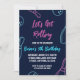 Ta er till en retro-fantastisk party! De här coola vintage bowling-partiinbjudningarna är perfekt för en pojkes födelsedagsfest eller ett roligts bowlingarrangemang. De här inbjudningarna har en ritstift med återgående skålning i fet blått och rött och gör att gästerna rullar i upphetsning.