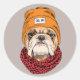 Den här designen har en bulldog porträtt i en hipsterhatt och med halsduk.