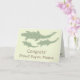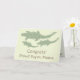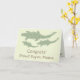 Roligt, urklippt bilder av grönt av kamouflage silhuetter från en alligator som ses uppifrån när den kryper och simmar genom den imaginära träsket. Bakgrunden till den här bilden är genomskinlig. Du ändrar bakgrunden, lägger till eller minskar antalet bilder, ändrar position och storlek för bilder och ändrar texten. Lustigt gratulerart kort för en stolt bada mamma.