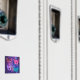 4 olika illustrationer av lite coola katt ansikte i rymden. En katt bär en del coola skuggor medan de andra har öga stängt och ser avslappnad ut, en har en fluga. Dessa katter placeras på en rymdbakgrund med ljusa färger och många skuggande tvillingstjärnor i bakgrunden.