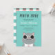 Coola födelsedagsfest inbjudan i turkos med en grått katt med vit solglasögon, vit konfetti och PARTY TIME skrivet i stor svart calligrafi brev.