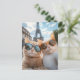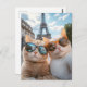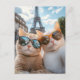 Två snyggtar katt står framför Eiffel Torn, gungar solglasögon och fångar den ultimata resestörningen på en solig dag i Paris.