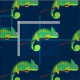 Cute chameleon mönster med grönt ödla på en roligt marin blå väv. Underbar reptilgåva till älskare.