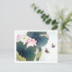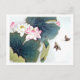 coola chinese lotus löv rosa blomsterflugkonst vykort