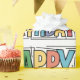Roligt, söt, färglös brev Grattis på födelsedagen-text omgiven av färgstarka musikinstrument är perfekt för musik älskare och gitarrer och trummare och saxspelare som firar en födelsedag.