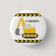 Knappen för födelsedagsfest av anpassningsbar av bygggrävare för coola för ett barn som kärlek gult bygger fordon i svart och gult. Roligt fordon är en liten pojke som kärlek bilar och lastbilar. Anpassa med namn i barn under "svartvitt" och "gult"-band.